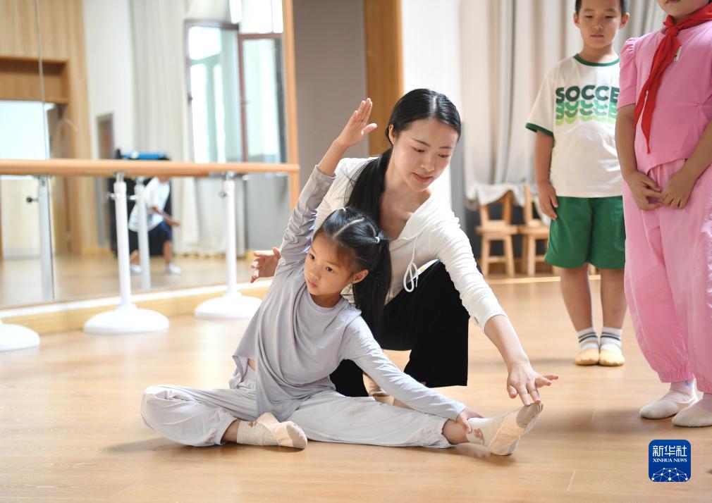 9月13日,雄安史家胡同小學(xué)舞蹈老師指導學(xué)生練習舞蹈。