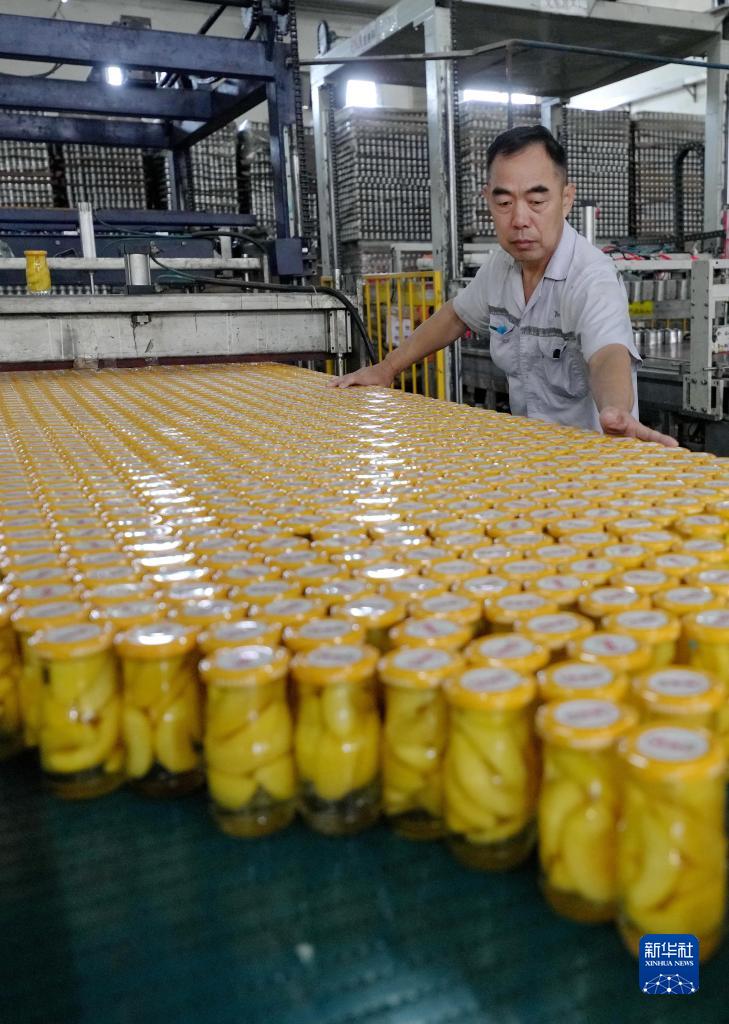 9月14日,河北省晉州市一家果品深加工企業(yè)的工人在水果罐頭包裝車(chē)間工作。