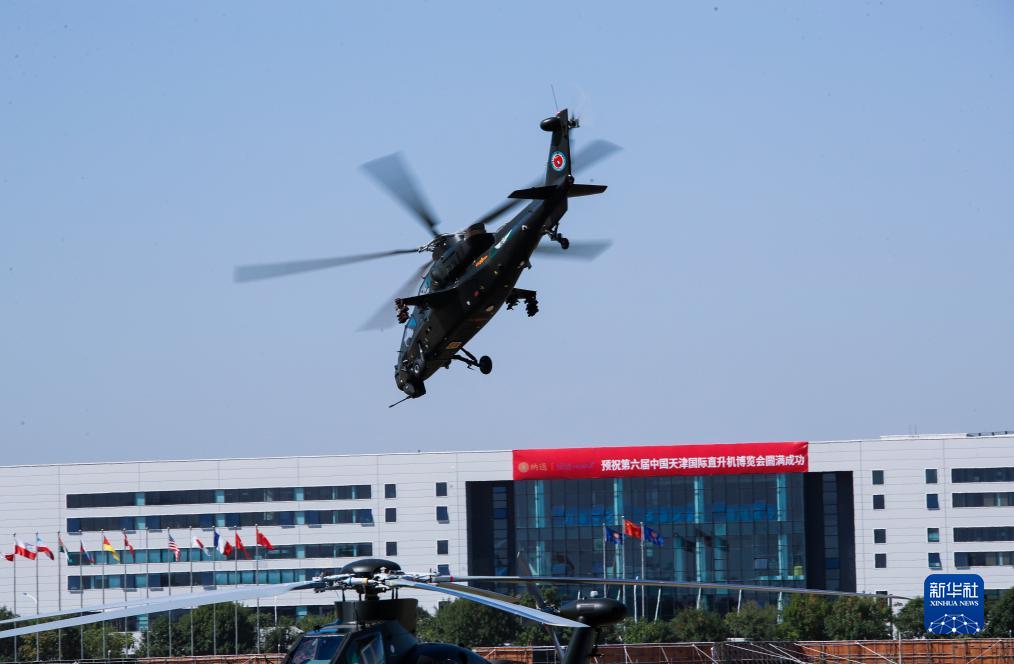 9月14日,在第六屆中國天津國際直升機博覽會(huì )開(kāi)幕式上,陸軍“風(fēng)雷”飛行表演隊直-10武裝直升機進(jìn)行飛行表演。
