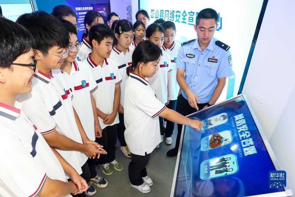 9月14日,浙江省舟山市岱山縣公安局民警組織當地的中學(xué)生以答題的形式學(xué)習網(wǎng)絡(luò )安全知識。