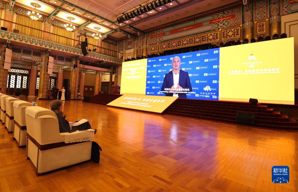 9月15日,聯(lián)合國教科文組織文化助理總干事埃內斯托·奧托內在論壇上進(jìn)行視頻演講。