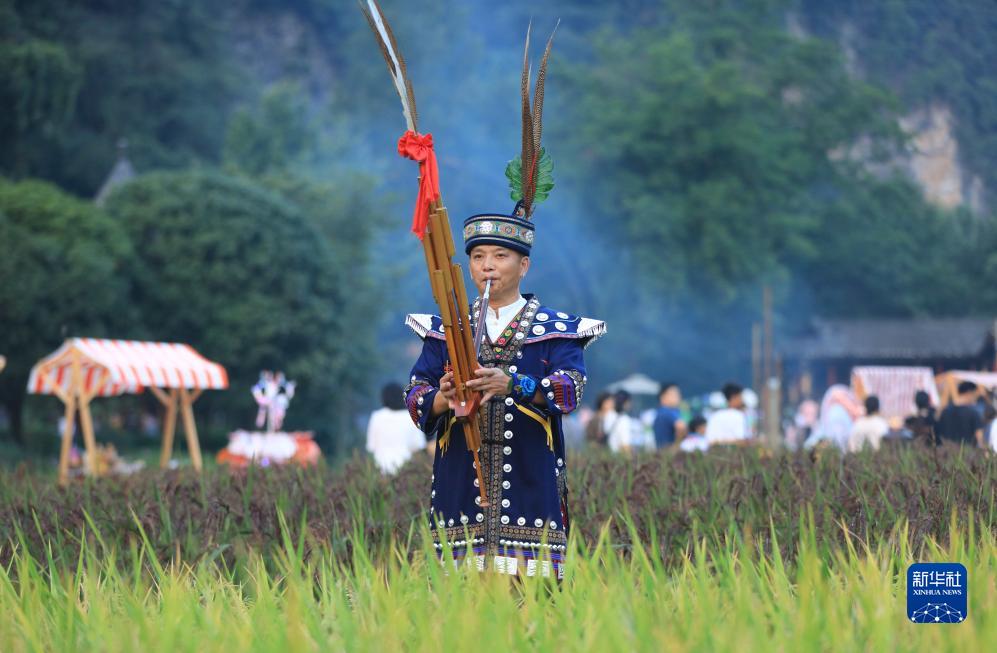 9月15日,民間藝人在張家界市武陵源區黃龍洞景區“田園市集慶秋收”活動(dòng)現場(chǎng)表演。