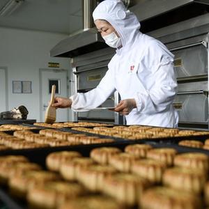 9月15日,在圍場(chǎng)縣一家食品加工企業(yè),工人在制作馬鈴薯全粉月餅。