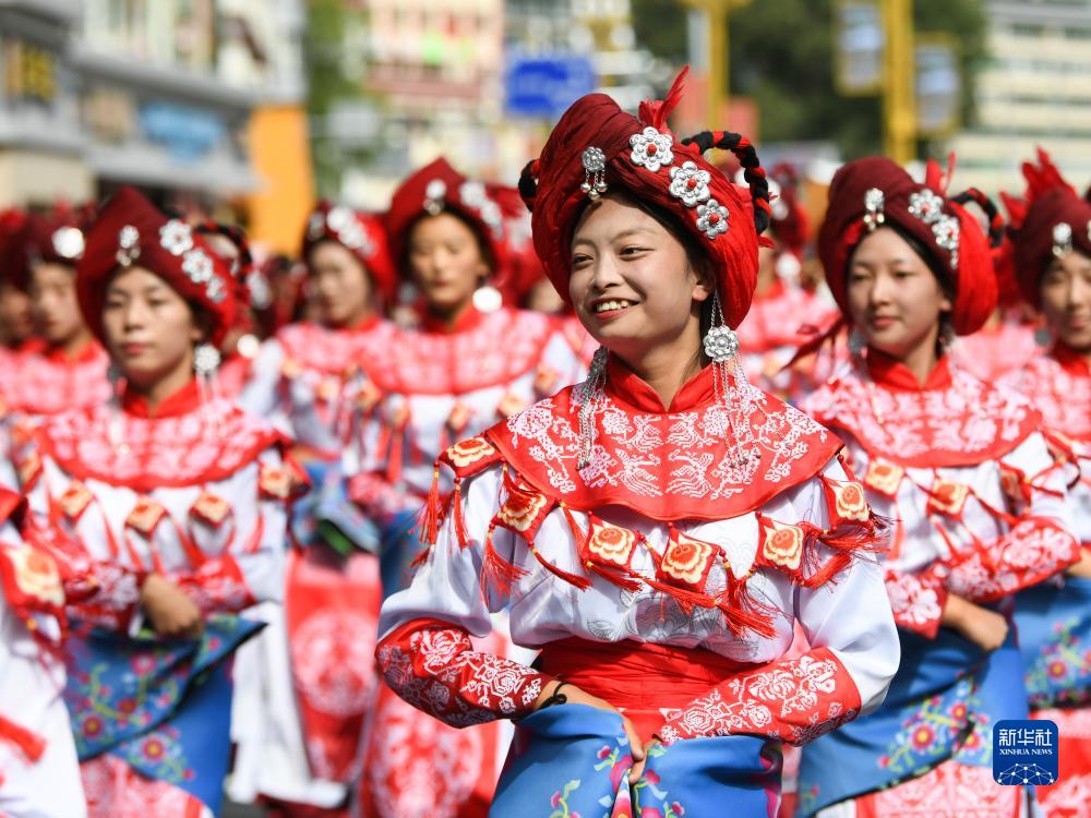 當日,來(lái)自四川省阿壩藏族羌族自治州13個(gè)縣市的近千名演員在馬爾康市街頭開(kāi)展巡游活動(dòng),展示阿壩州各個(gè)地區的非遺文化。據了解,非遺展演是阿壩州成立70周年系列慶?;顒?dòng)之一。同時(shí),當地還開(kāi)展非遺集市、非遺晚會(huì )等活動(dòng)。