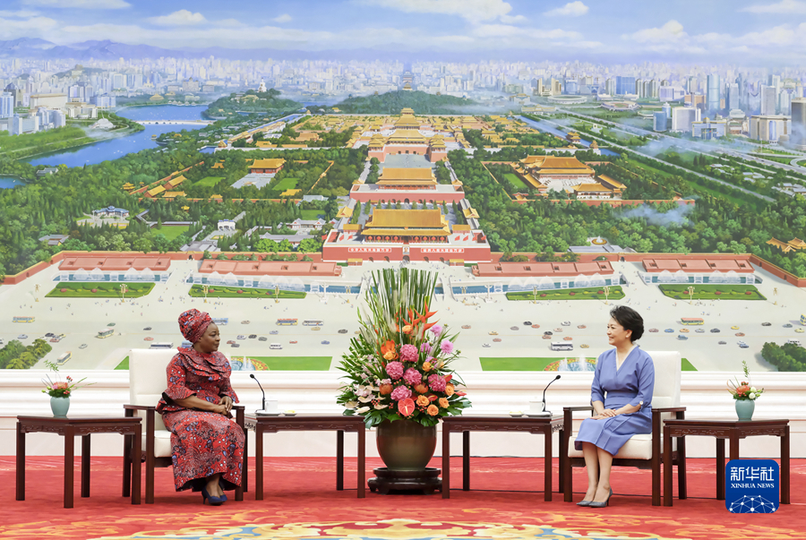 9月15日,國家主席習近平夫人彭麗媛在北京會(huì )見(jiàn)陪同贊比亞總統希奇萊馬對中國進(jìn)行國事訪(fǎng)問(wèn)的贊比亞總統夫人穆廷塔。