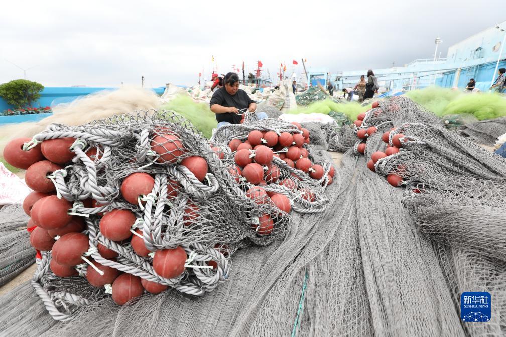 9月16日,漁民在江蘇省鹽城市射陽(yáng)縣黃沙港國家中心漁港整理漁具。