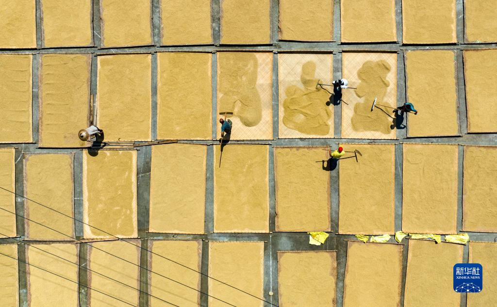 金秋時(shí)節,各地農民抓住晴好天氣晾曬收獲的高粱、水稻、玉米等糧食作物,呈現多彩的豐收圖景。