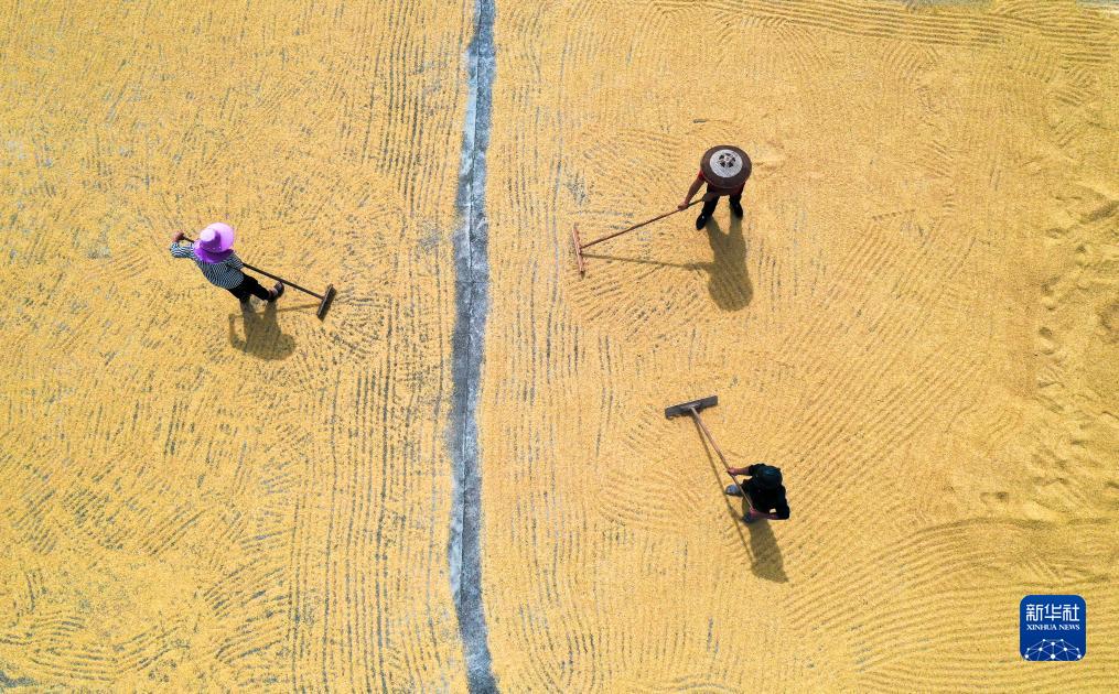 金秋時(shí)節,各地農民抓住晴好天氣晾曬收獲的高粱、水稻、玉米等糧食作物,呈現多彩的豐收圖景。