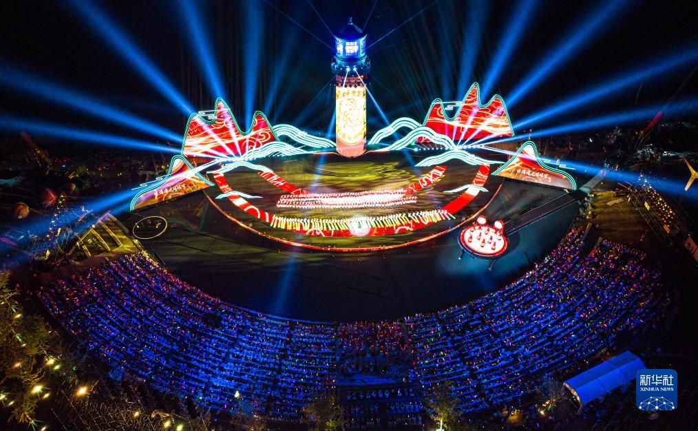 9月16日,觀(guān)眾欣賞第十四屆中國長(cháng)江三峽國際旅游節開(kāi)幕式表演(無(wú)人機照片)。