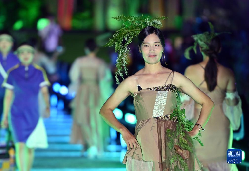9月16日,海南省五指山市暢好鄉的居民展示黎族創(chuàng )意服飾。