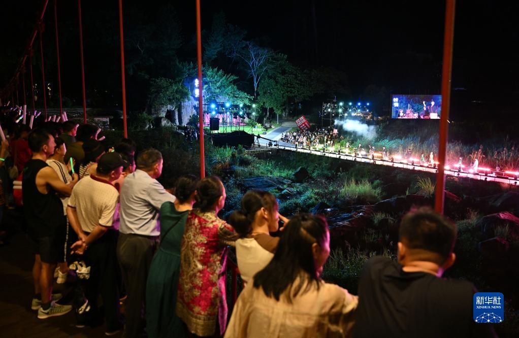 9月16日,觀(guān)眾在舞臺附近的一座橋上觀(guān)看表演。