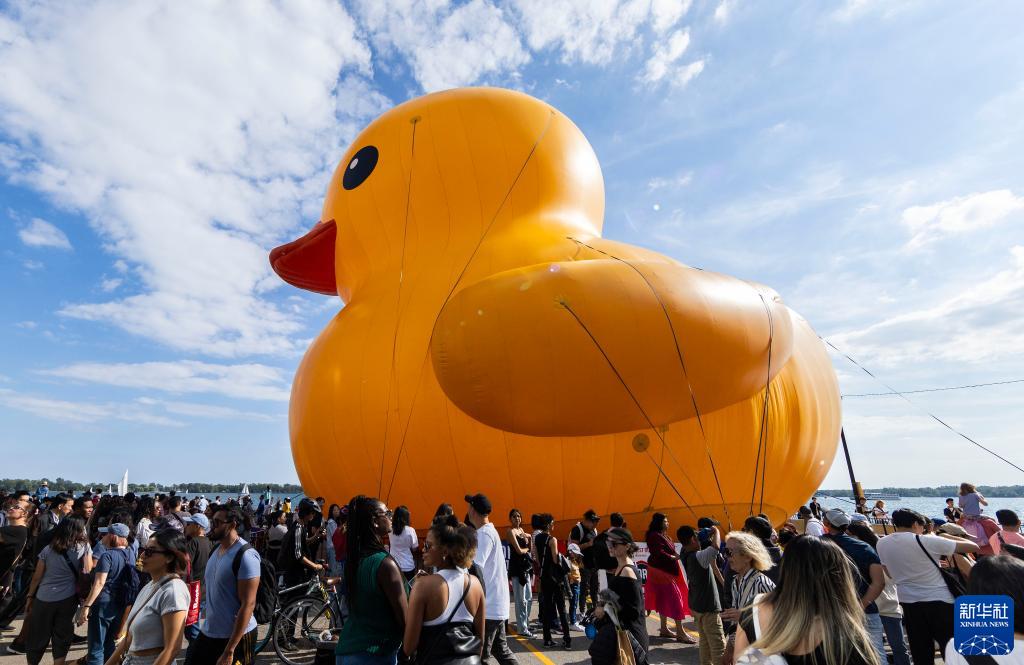 當日,一只6層高、重約13.6噸(30000磅)的橡皮“大黃鴨”亮相多倫多,吸引了眾多游人。這是“大黃鴨”繼2017年后再次來(lái)到多倫多,從9月16日至17日向公眾開(kāi)放。