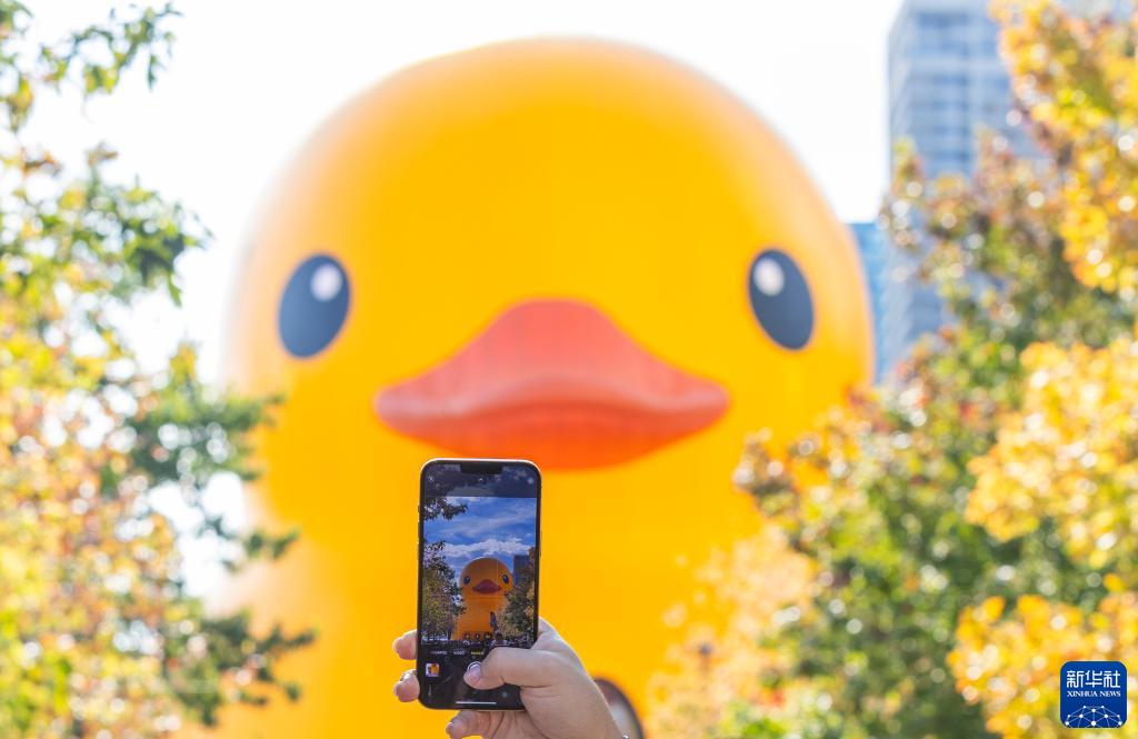 當日,一只6層高、重約13.6噸(30000磅)的橡皮“大黃鴨”亮相多倫多,吸引了眾多游人。這是“大黃鴨”繼2017年后再次來(lái)到多倫多,從9月16日至17日向公眾開(kāi)放。