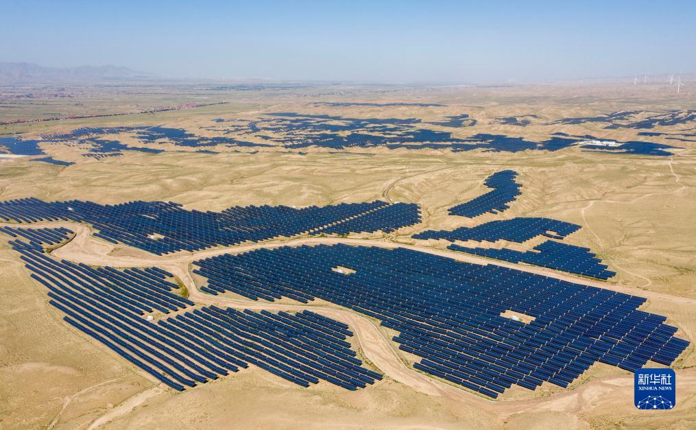 這是9月16日拍攝的位于寧夏吳忠市同心縣河西鎮的光伏電站(無(wú)人機照片)。