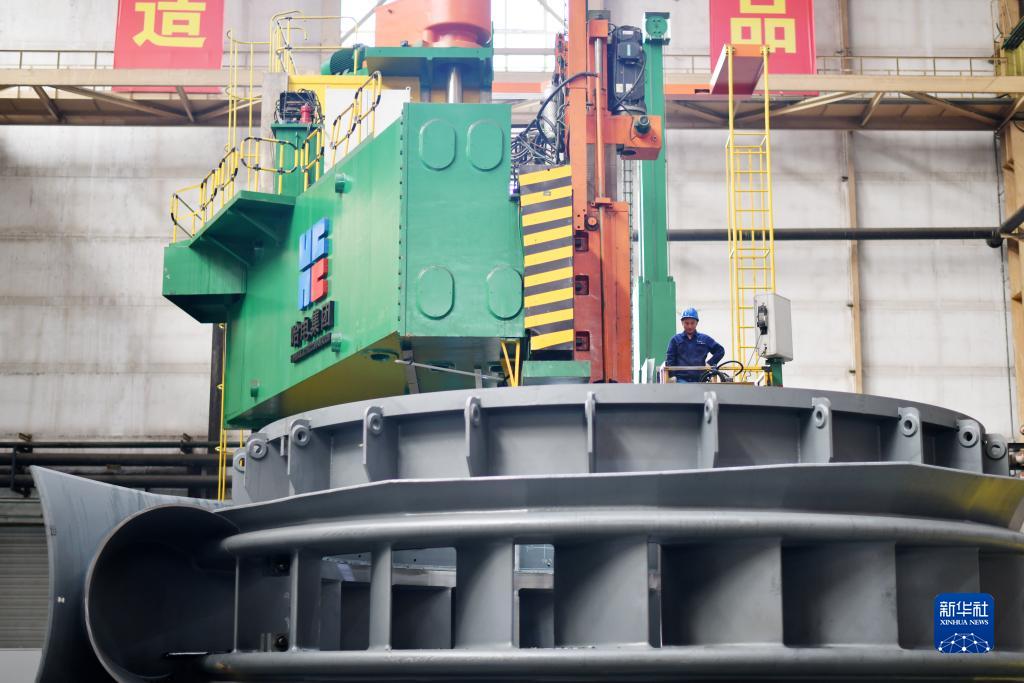 在哈電集團哈爾濱電機廠(chǎng)有限責任公司車(chē)間,工人在生產(chǎn)作業(yè)(2023年4月11日攝)。
