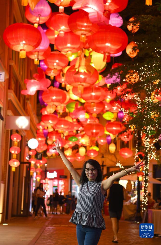 為迎接中秋佳節的到來(lái),香港利東街舉辦“躍兔·迎月”戶(hù)外彩燈會(huì )。約200米長(cháng)的林蔭大道懸掛起800多個(gè)五彩繽紛的中式燈籠,營(yíng)造出喜慶的佳節氣氛。