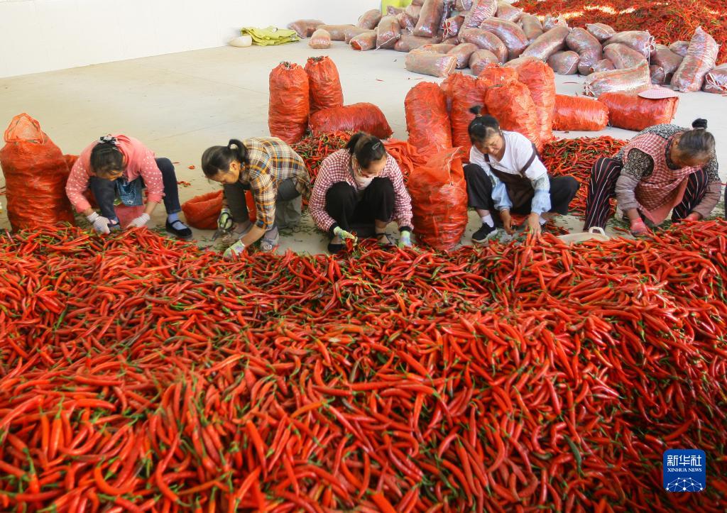 9月17日,在云南省曲靖市沾益區金龍街道新海社區的辣椒收購點(diǎn),務(wù)工人員分揀辣椒。