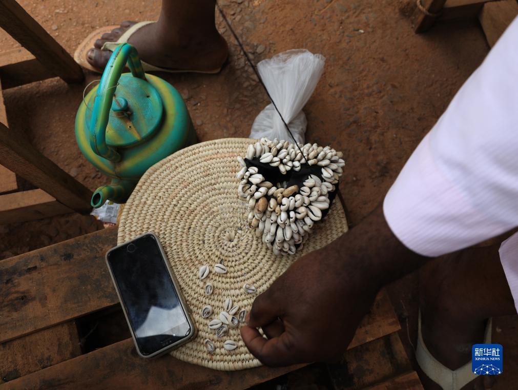9月16日,在喀麥隆首都雅溫得手工藝品市場(chǎng),一名手工藝人制作手工藝品。