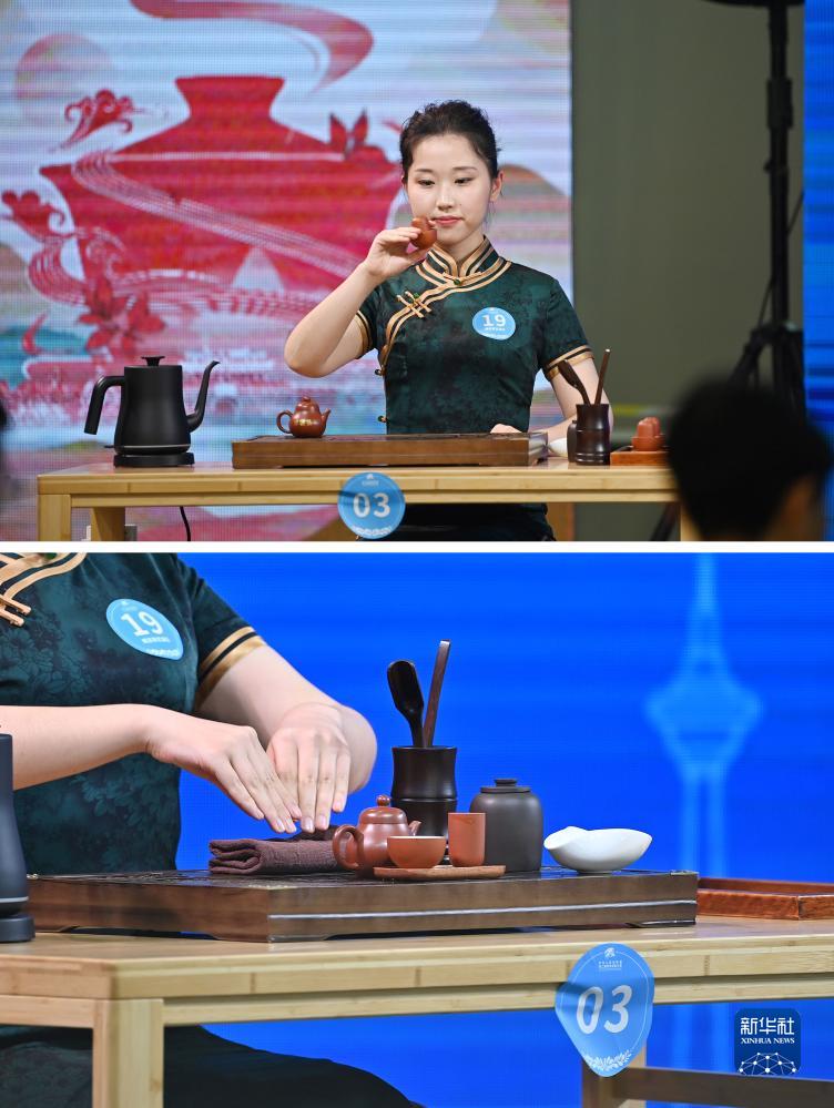 9月18日,選手在國家會(huì )展中心(天津)參加茶藝項目的比賽(拼版照片)。