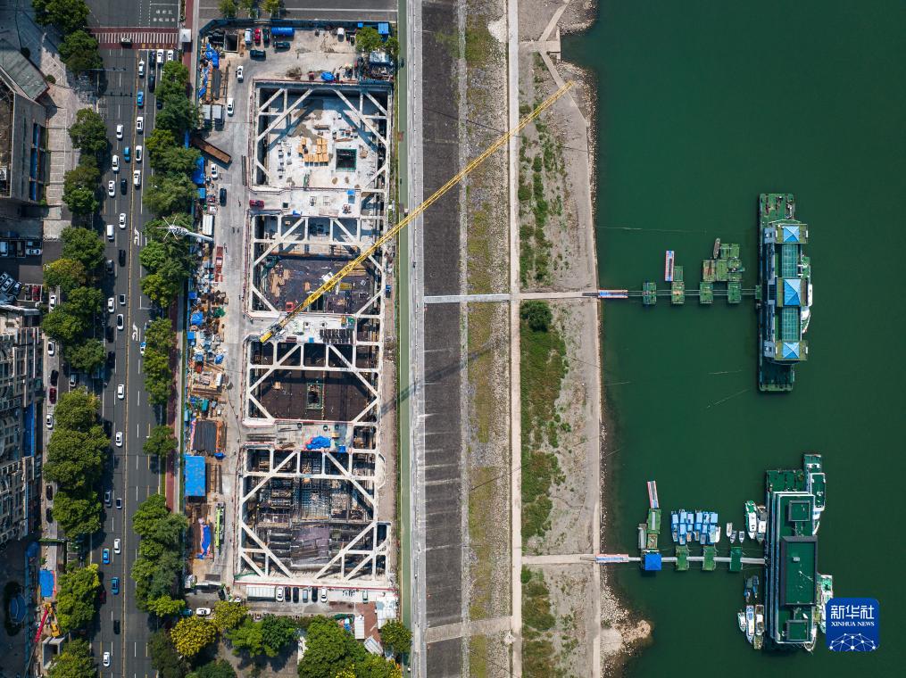 9月17日,三峽集團旗下長(cháng)江環(huán)保集團建設者在宜昌市“一江兩岸”污水廠(chǎng)網(wǎng)新建、改擴建項目大公橋調蓄池施工現場(chǎng)加緊建設(無(wú)人機照片)。
