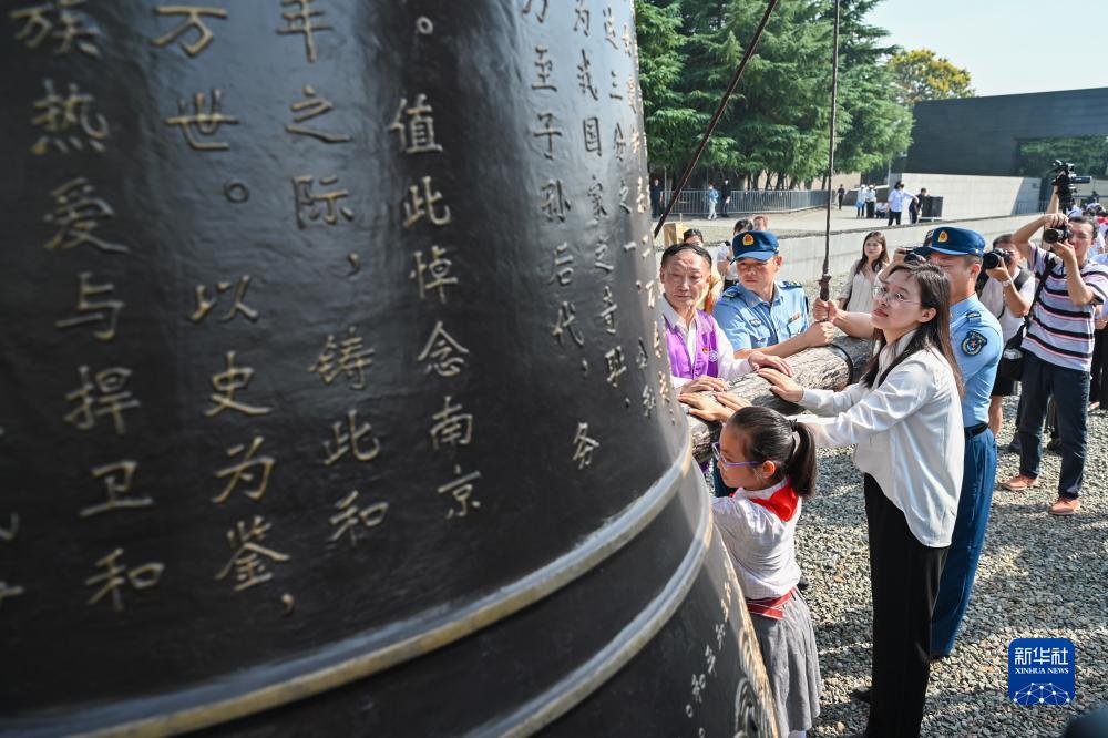 9月18日,社會(huì )各界代表在侵華日軍南京大屠殺遇難同胞紀念館撞響和平大鐘。