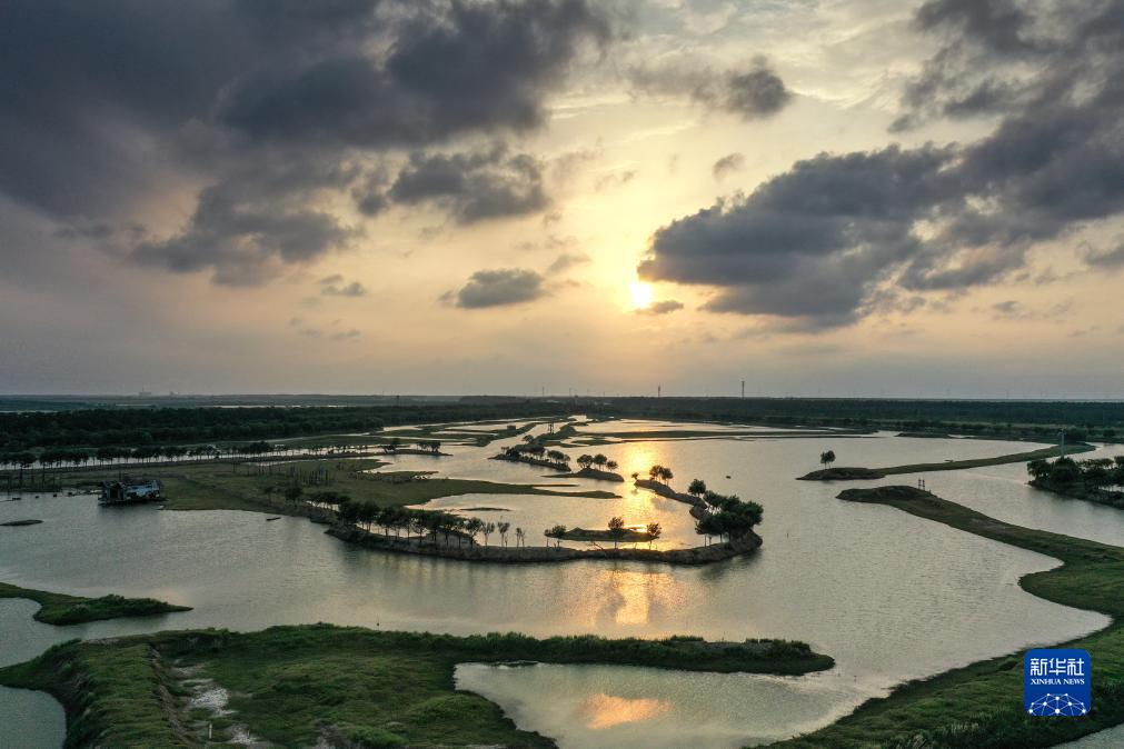 這是位于江蘇鹽城的大豐麋鹿國家級自然保護區野鹿蕩景色(2023年8月20日攝,無(wú)人機照片)。
