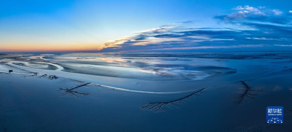 這是鹽城東臺條子泥濕地日出時(shí)分景色(2023年9月1日攝,無(wú)人機照片)。