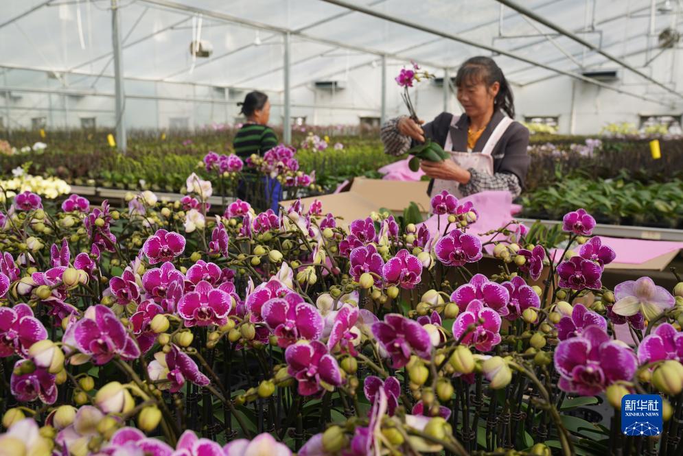 9月18日,農戶(hù)在大棚內挑選蝴蝶蘭。