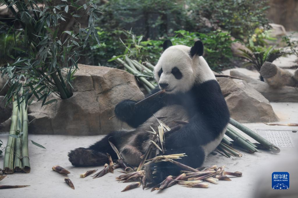 這是9月19日在成都大熊貓繁育研究基地拍攝的大熊貓“美蘭”。