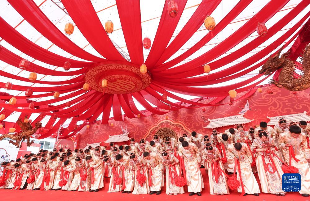 當日,在成達萬(wàn)(成都經(jīng)達州至萬(wàn)州)高速鐵路四川省蓬安縣燕山寨隧道口的施工工地,來(lái)自中鐵三局五公司各建設工地的38對新人,身著(zhù)中國傳統婚禮服飾參加集體婚禮。
