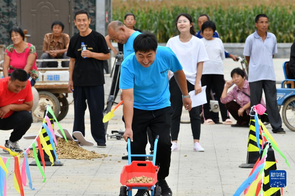當日,河北省滄州市肅寧縣師素鎮舉辦農民趣味運動(dòng)會(huì ),人們通過(guò)參與運花生、貼辣椒、豆類(lèi)分揀等趣味運動(dòng)項目,慶祝豐收。