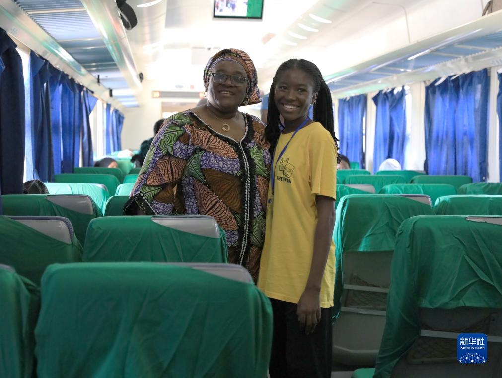 9月18日,在尼日利亞首都阿布賈的阿卡鐵路起點(diǎn)站伊都火車(chē)站,兩名乘客在車(chē)廂內留影。
