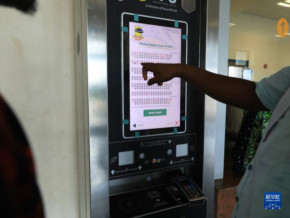 9月18日,在尼日利亞首都阿布賈的阿卡鐵路起點(diǎn)站伊都火車(chē)站,乘客在購票大廳進(jìn)行網(wǎng)上購票。