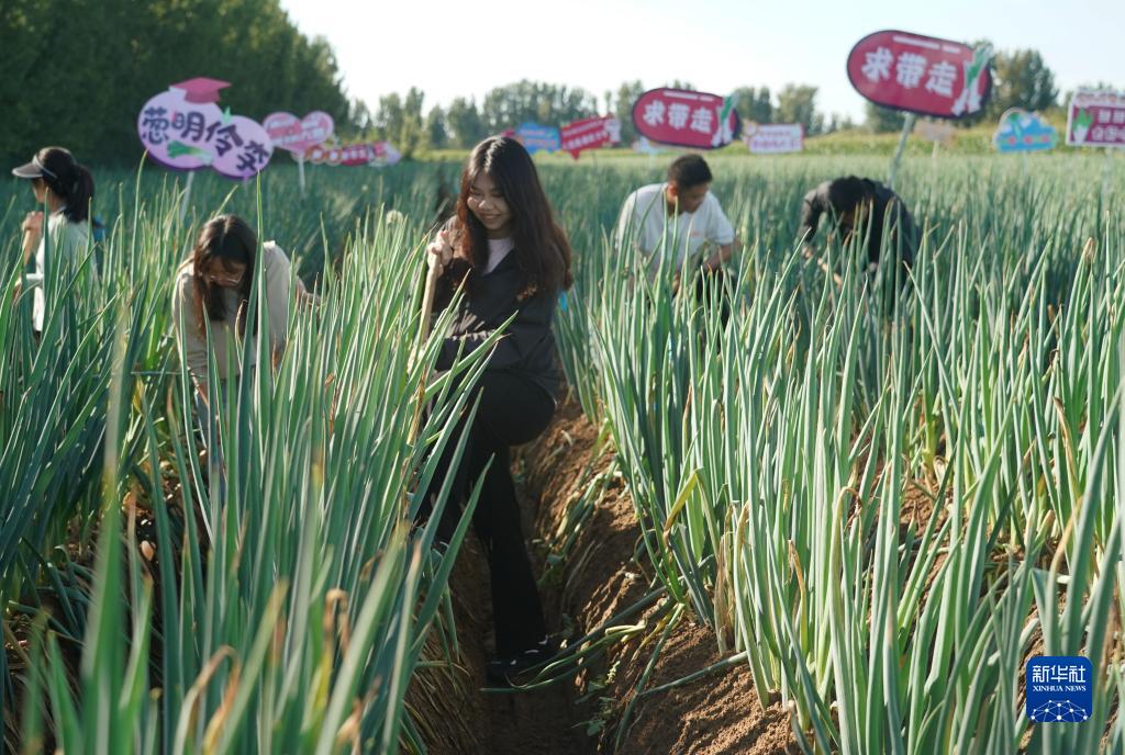 9月20日,在北京市平谷區東高村鎮趙家務(wù)村大蔥種植基地,市民在活動(dòng)現場(chǎng)體驗拔大蔥。