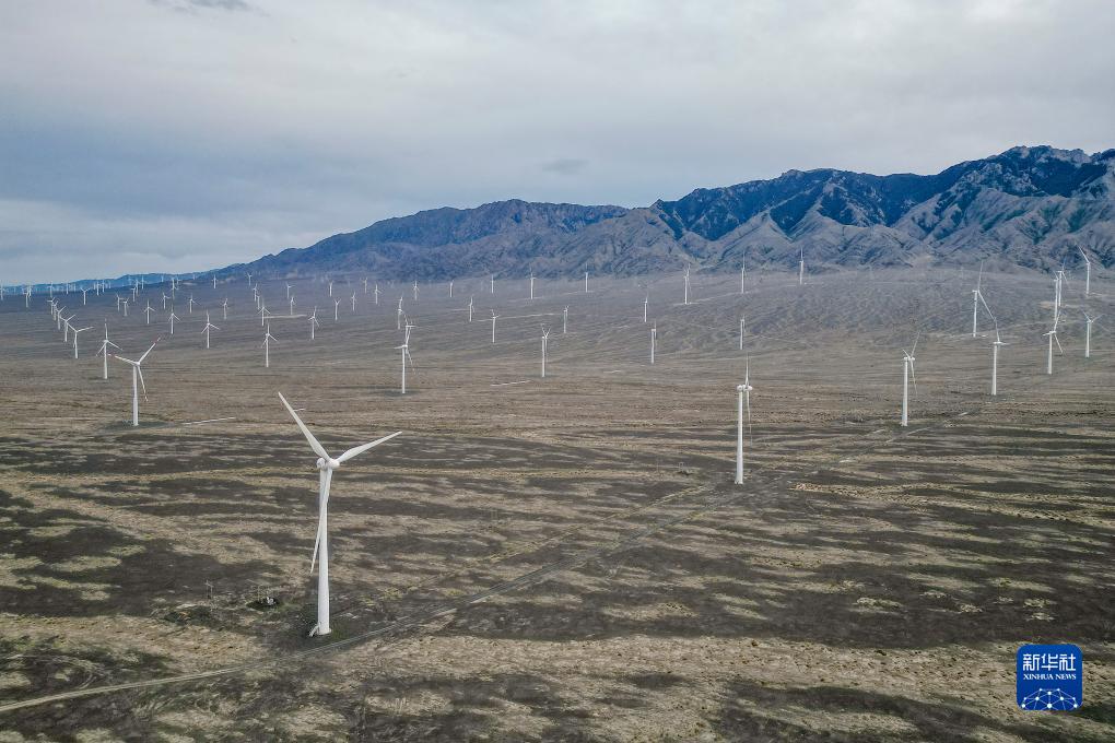 新疆達坂城風(fēng)電場(chǎng)(8月3日攝,無(wú)人機照片)。