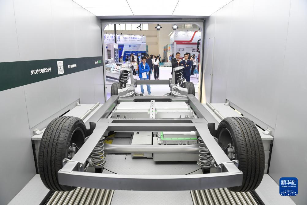 9月21日,在2023世界智能網(wǎng)聯(lián)汽車(chē)大會(huì )室內展區,參觀(guān)者在參觀(guān)一家企業(yè)的新能源汽車(chē)換電演示。