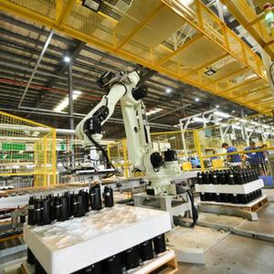 9月21日,在柳州津晶電器有限公司,機器人在生產(chǎn)線(xiàn)上作業(yè)。