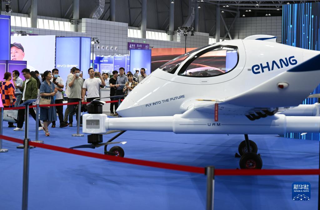 9月21日,觀(guān)眾在2023世界制造業(yè)大會(huì )參觀(guān)一款載人級自動(dòng)駕駛飛行器。