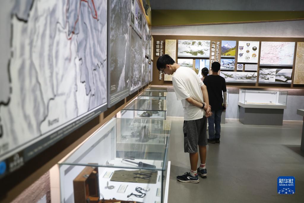 9月19日,來(lái)自上海的大學(xué)生王紀元(左)在昆明飛虎隊紀念館參觀(guān)。