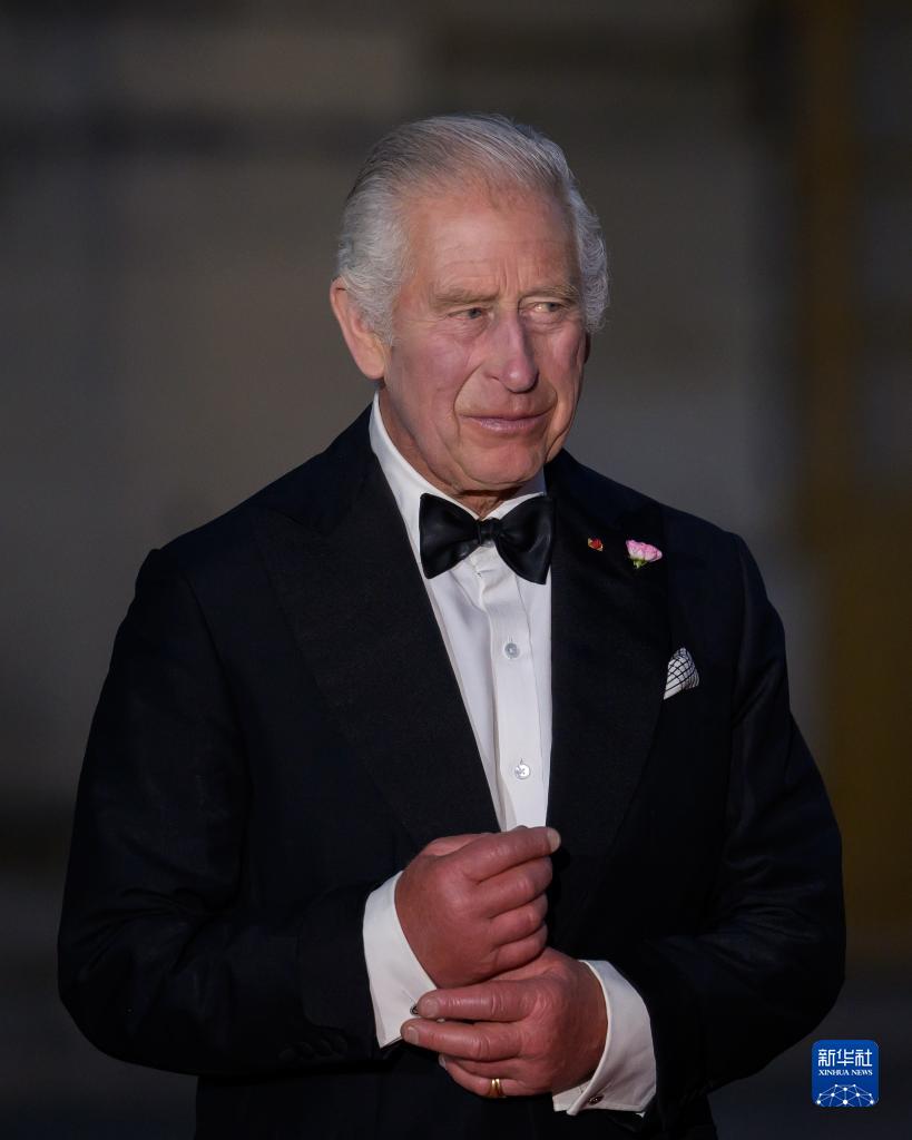 9月20日,在法國巴黎近郊的凡爾賽宮,英國國王查爾斯三世抵達國宴現場(chǎng)。