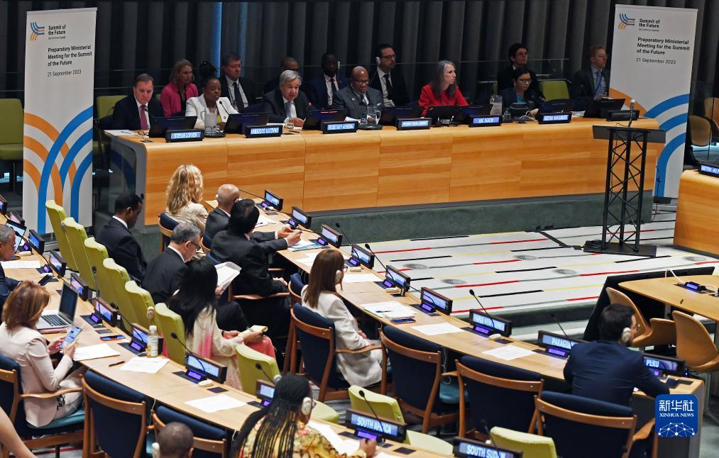 9月21日,在位于紐約的聯(lián)合國總部,聯(lián)合國秘書(shū)長(cháng)古特雷斯在未來(lái)峰會(huì )部長(cháng)級籌備會(huì )上講話(huà)。
