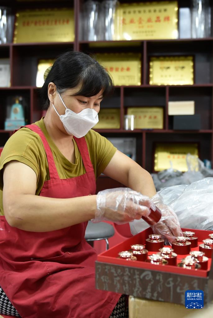 9月21日,在汝州市焦村鎮一家桑蠶產(chǎn)業(yè)公司,工作人員在包裝桑葉茶。