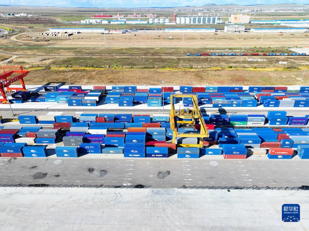 這是9月20日拍攝的滿(mǎn)洲里站貨運車(chē)間集裝箱場(chǎng)(無(wú)人機照片)。