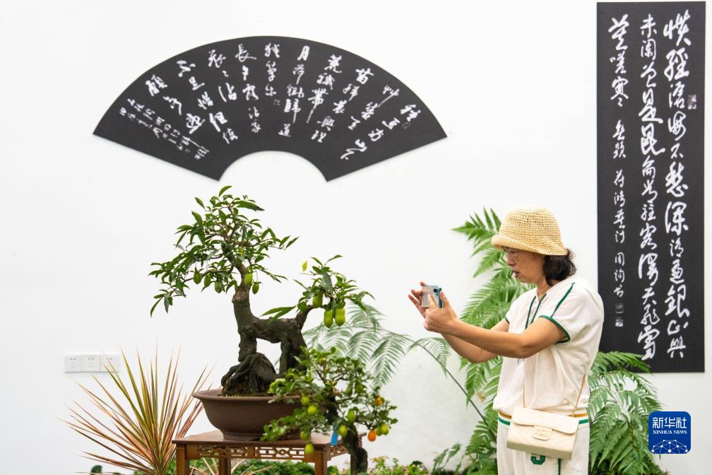 9月22日,在湘潭盤(pán)龍大觀(guān)園,觀(guān)眾在給展出的盆景拍照。