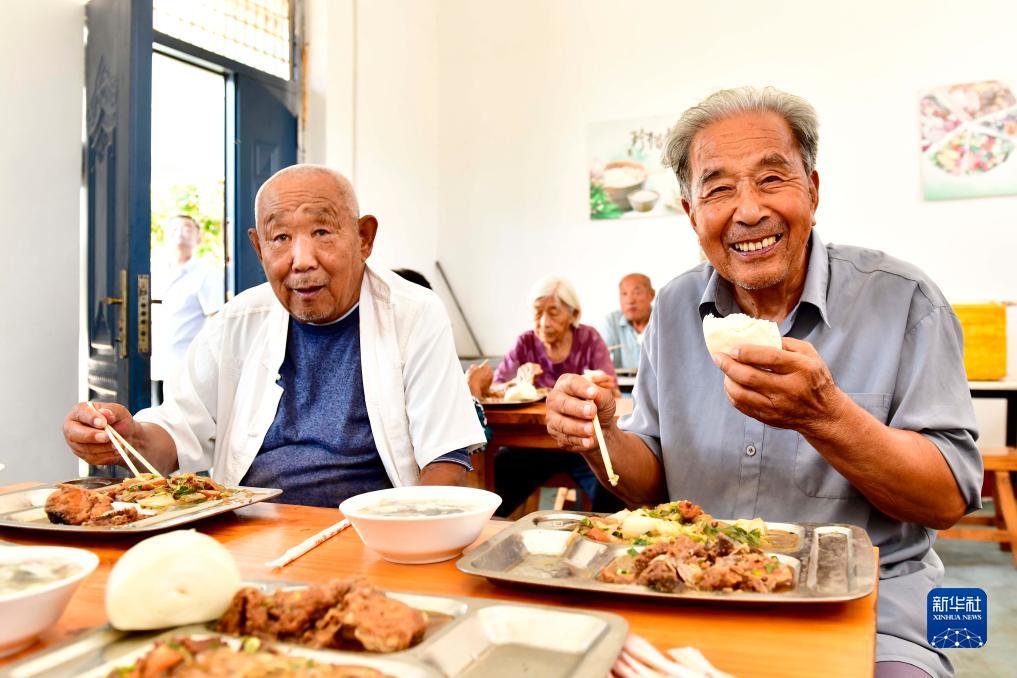 9月22日,在鄆城縣鄆州街道王沙灣社區日間照料中心,老人們在食堂用餐。