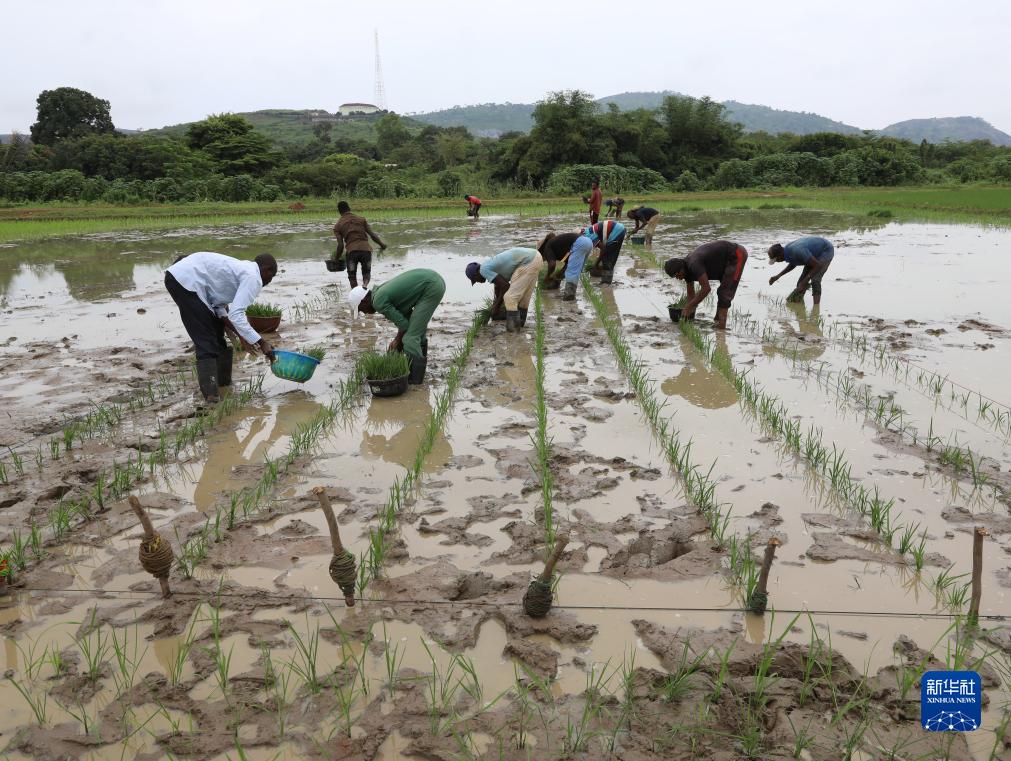 9月19日,當地員工在尼日利亞阿布賈的中國援尼日利亞農業(yè)技術(shù)示范中心插秧。
