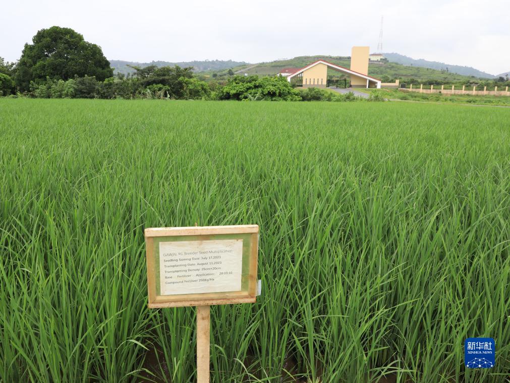 這是9月19日在尼日利亞阿布賈的中國援尼日利亞農業(yè)技術(shù)示范中心拍攝的GAWAL R1原種水稻田。