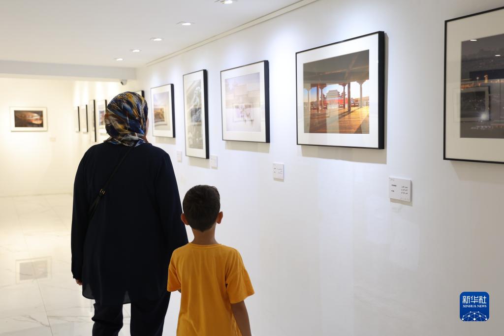9月21日,在摩洛哥首都拉巴特,參觀(guān)者在“你好,北京”文旅交流活動(dòng)中參觀(guān)攝影展。