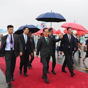 9月23日上午,來(lái)華出席杭州亞運會(huì )開(kāi)幕式的韓國總理韓德洙抵達浙江省杭州市。