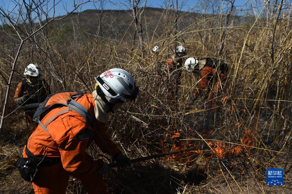 9月22日,消防人員在巴西巴伊亞州里亞尚-達斯內維斯附近進(jìn)行滅火作業(yè)。